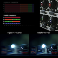 Capturing exposure sequences for computing HDR images is prone to motion blur, which also affects HDR light-field recording. This talk introduces a method that reduces motion blur and leads to shorter recording interval. Four exposures were encoded at varying camera perspectives, and long exposure recordings were deblurred by tracking features in low-exposure recordings.